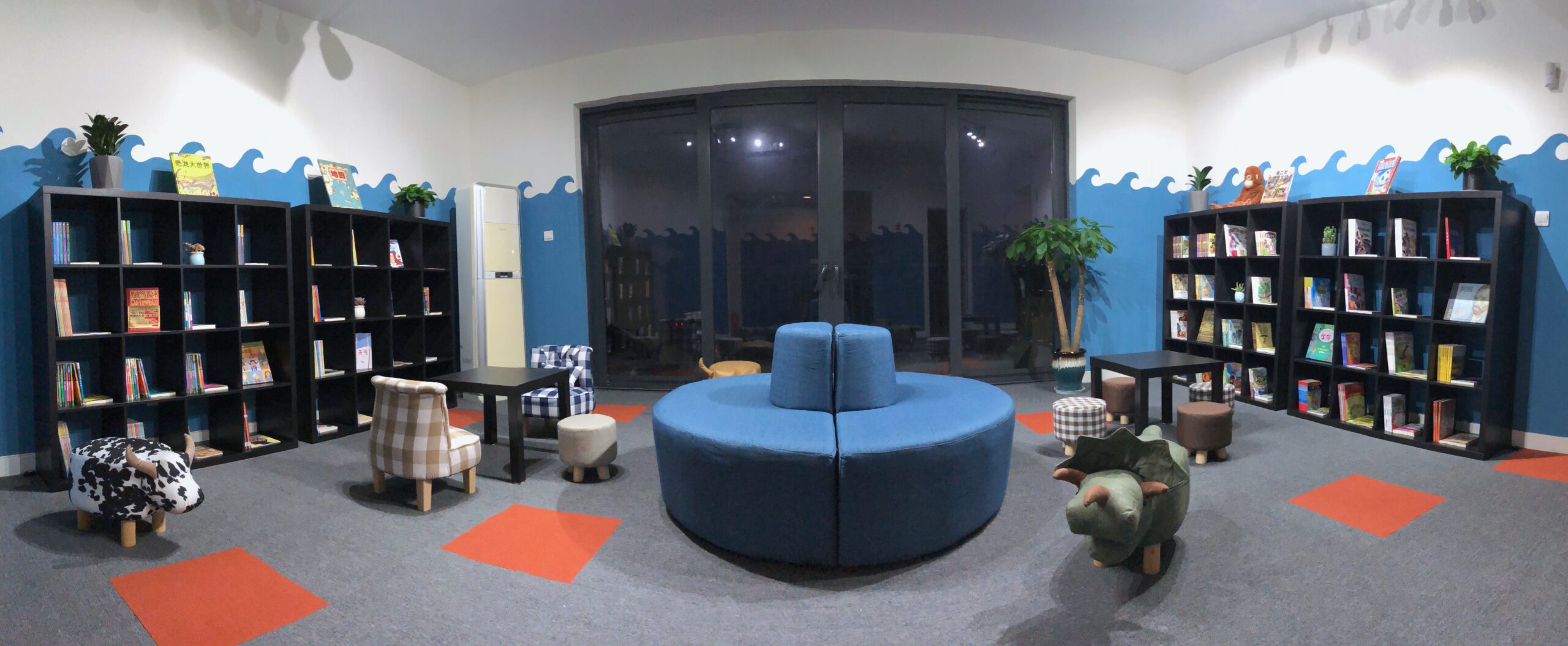 Crocodile consisted out of a few rooms with each its own theme and selection of books. Everything is catered to the safety of children and to provide them with the most comfortable way to enjoy reading.