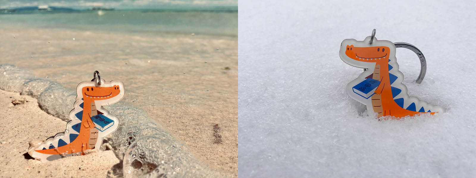 The logo and mascotte is of course a crocodile, in the color orange to refer to my Dutch roots as a designer. The keychain version travelled together all over the world.
