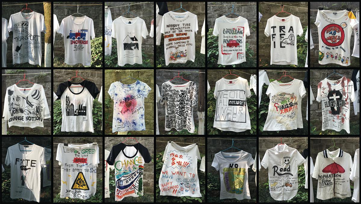 Go and collect. In groups of two, students had to go out into the city with an assigned location, question and target audience. The collection of information involved improvisation which they visualised into a T-shirt design. They also had to record the interview and make photos of the area.